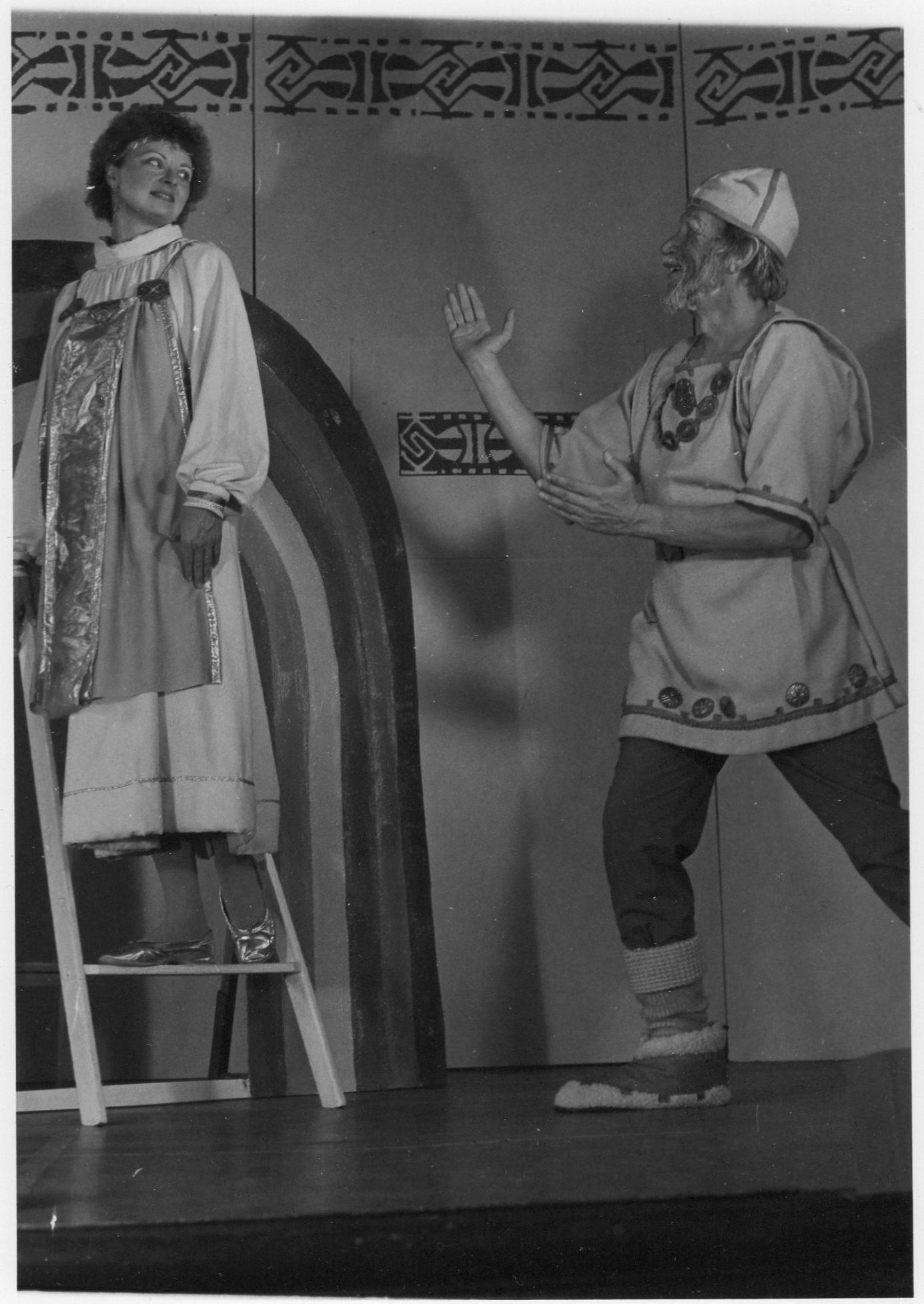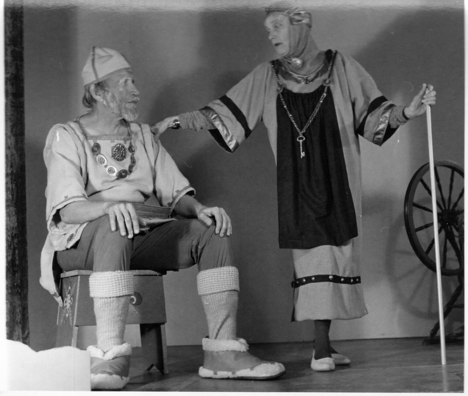 Harry Siitonen (r) as Väinämönen, Irja Friend (with staff)
