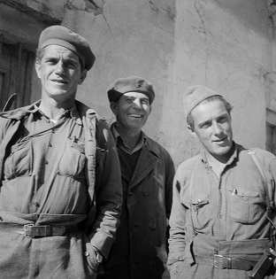 Joe Dougher on the left, wearing a Lincoln Battalion uniform.